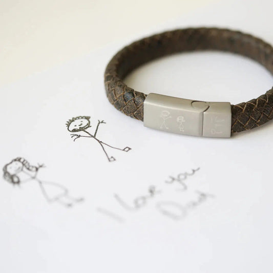 Personalised Handwriting Engraved Woven Leather Bracelet for Men