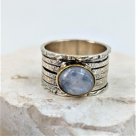Frida - Moonstone 925 Silver Spinning Ring With Brass Setting
