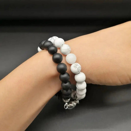 Howlite and Matte Black Agate Magnetic Couple Bracelets